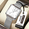 - Design Sofisticado: Com um mostrador quadrado inovador e pulseira de malha de aço inoxidável, este relógio é o epítome da moda e casualidade.